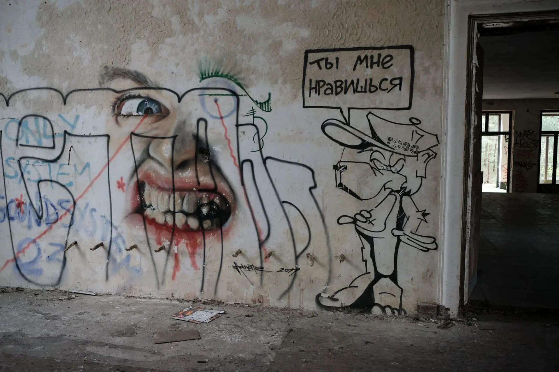 Graffiti by Adnate and Tobo at abandoned Soviet army base